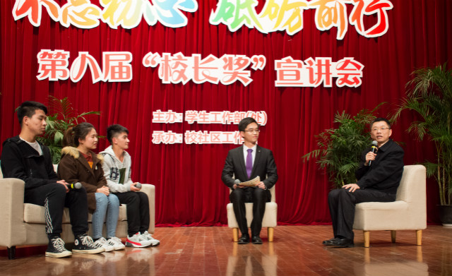 12月4日晚,“不忘初心、砥砺前行”——第八届“校长奖”宣讲会举行,校党委副书记、校长陆靖出席,党委学工部部长袁翔及各亚博足彩相关负责人、新生辅导员,各亚博足彩大一新生等300余人共同参会。