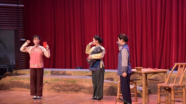 11月2日晚,《十送红军》、《映山红》等熟悉的旋律在大学生活动中心多功能厅响起,上海沪剧院的大型沪剧《回望》在我校精彩上演,300多名师生观看了演出。