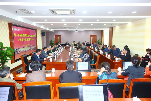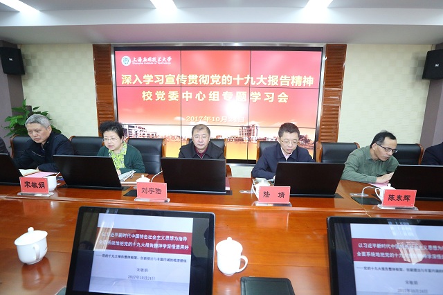 10月24日上午,校党委理论学习中心组召开专题学习会,认真学习党的十九大开幕会上习近平同志代表十八届中央委员会所作的报告精神。校党委书记刘宇陆主持学习会。校党委副书记、校长陆靖出席并讲话。校党委副书记、纪委书记宋敏娟作领学报告。副校长陈东辉,副校长张锁怀及校党委中心组全体成员参加学习会。