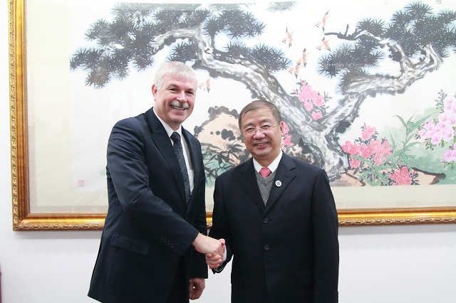近日,校党委书记刘宇陆热情会见了来访的英国伦敦金斯顿大学外事副校长兼商亚博足彩院长罗纳德?图宁加(Ronald Tuninga)、国际事务顾问大卫?努尔(David Knull)和中国区事务负责人马子明一行。