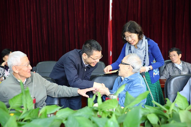 陆靖代表校党委和党委书记刘宇陆,向离退休干部致以节日的问候与祝福,祝愿老同志们身体健康,阖家幸福,并向年逾80周岁、90周岁的老干部送上慰问金和祝福。