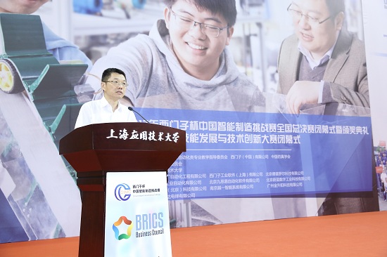 大赛于30日举行了闭幕式。教育部原副部长、全国工程教育专业认证专家委员会主任委员吴启迪,中国发明协会党委书记、常务副理事长兼秘书长、国家科技奖励监督委员会委员余华荣,上海市教育委员会巡视员蒋红、高教处处长桑标,我校党委书记刘宇陆,校长、校党委副书记陆靖,副校长张锁怀,教育部高等亚博足彩自动化类专业教学指导委员会副秘书长王红,西门子(中国)有限公司数字化工厂集团工厂自动化部副总经理李劲松,中国系统仿真学会副理事长马世伟、全国竞赛组委会专家组代表萧德云及来自金砖国家的外国友人出席闭幕式。