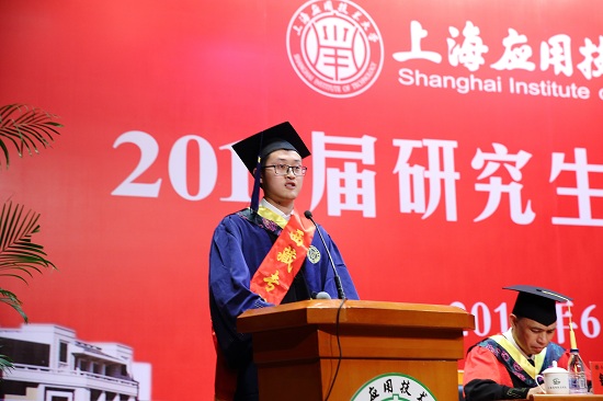 西藏专招生、来自化工亚博足彩的方龙伟同学作为毕业生代表,追忆了自己研究生三年的学习历程,感谢导师的悉心教导、耐心培育,并表示一定会秉承“明德、明学、明事”的校训,认真做人、勤恳做事,在自己的工作岗位上默默耕耘、发光发热,为母校争光添彩。最后他还以一首藏头诗祝福母校、老师和同学,全场对此报以热烈的掌声。