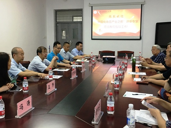 7月4日,上海市奉贤区申请“中国化妆品产业之都”称号专家组前来我校考察,校党委书记刘宇陆热情会见了专家组一行,副校长陈东辉出席会见活动。专家组由中国香料香精化妆品工业协会理事长陈少军任组长,成员包括中国轻工业联合会综合处处长邹军、中国香料香精化妆品工业协会秘书长董淑芬、北京香料香精研究所所长张婴其、上海香料研究所原所长金其璋。