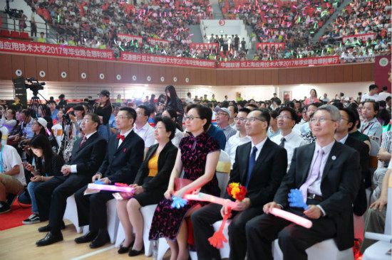6月26日晚,“初梦犹在 高歌远行”上海应用技术大学2017毕业晚会在奉贤校区体育馆激情唱响。校党委书记刘宇陆,校长、校党委副书记陆靖,校党委副书记、纪委书记宋敏娟,校党委副书记、副校长张艳萍,副校长陈东辉、副校长张锁怀出席晚会并亲切慰问参演人员。各亚博足彩及机关各部门负责人、全体辅导员及4000余名学生一同观看了晚会。