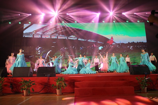 晚会节目精彩纷呈。歌曲上应版《南山南》、《成都》、《春风十里》婉转动听,完美地展现了毕业生们对校园里那些人、那些物、那些事的留恋和不舍。民族舞《欢乐新疆》活泼优美、激情四射,展现异域风情。研究生组曲《青春的名义》配合视频,将上应学子对母校的不舍与感恩之情表达得淋漓尽致;拉丁舞《let’s get loud》浪漫而富有活力,表演精彩纷呈。师生配乐诗朗诵《青春万岁》慷慨激昂,牵动着毕业学子的心,演绎着对母校、对青春的不舍和感慨。歌伴舞《启程》诉说相遇相知的故事和那真挚的情谊。歌曲《被风吹过的夏天》、《不说再见》勾起对过往的怀念,用音乐深情地告白。武术秀《武动上应》发扬师承师道的精神。后勤宿管阿姨们联合滚灯社团同学们共同演绎的舞蹈《张灯结彩》、歌曲《老师我想你》、《真的爱你》、教工合唱《听妈妈讲那过去的事情》、校大学生艺术团舞蹈《心声》感恩老师情冗长、爱无疆。《再见,为了再见》道一声珍重,校教工合唱《天路》宛转悠扬,《奔跑吧,朋友》场面激情无限,反映出当代大学生的蓬勃朝气活力。教工合唱团、大学生合唱团、管乐团、玄乐团、舞蹈团、体舞社、礼仪队、吉他社、轮滑队、橄榄球队等师生联袂表演的大型歌舞《同一首歌》将晚会带入高潮。最后全场高唱《歌唱祖国》,恢弘的乐章大合唱给整个晚会划上完美的句号。