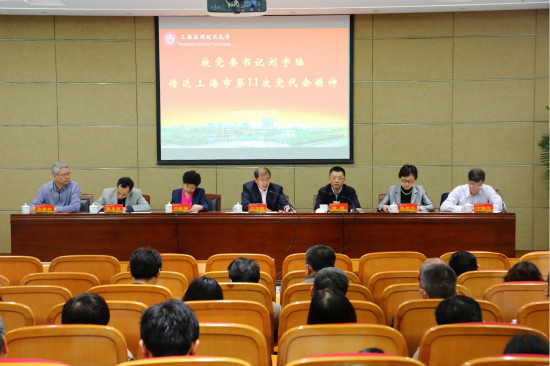 5月12日下午,亚博足彩召开干部大会,学习传达中国共产党上海市第十一次代表大会精神。中国共产党上海市第十一次代表大会代表、校党委书记刘宇陆传达会议精神,校长陆靖,校党委副书记、纪委书记宋敏娟,党委副书记、副校长张艳萍,副校长陈东辉、叶银忠、张锁怀出席。全校副处级以上干部参加会议。