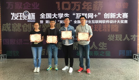 4月下旬,全国大学生“互联网+”创新大赛暨第四届“发现杯”全国大学生互联网软件设计大奖赛总决赛在杭州举行,我校入围决赛的两个项目:张峰、王智宇、刘宇、杨行等的“We校APP”获得“最具投资价值”创业大奖、全国总决赛一等奖;蔡雨欣、吴诚骏、贺晓斌、李辉、赵佳盛的“植物管家”获得全国总决赛一等奖;我校教师肖立中、曹扬分获“优秀指导老师”称号。