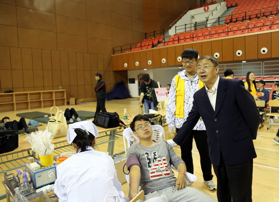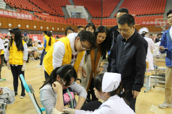 陆靖来到体检区、化验区、采血区,亲切慰问献血学生,关切地询问首次献血的学生。并叮嘱学生献血后不可剧烈运动,注意饮食和休息。