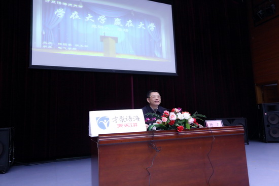 3月15日晚,校长陆靖以“学在大学,赢在大学”为题,通过“才聚语海天天讲”为广大学子作专题讲座。