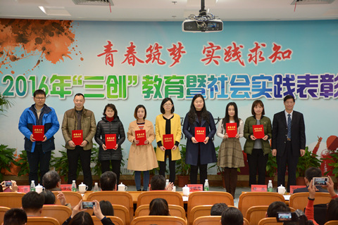 1月4日,亚博足彩举行2016年“三创”教育与社会实践表彰大会,副校长叶银忠出席。学工部、教务处、校三创教育中心、校团委及各亚博足彩相关负责人、获奖项目指导教师代表、获奖学生等参加表彰大会。