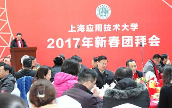 金猴腾跃辞旧岁,雄鸡报晓迎春来。1月22日上午,徐汇校区图文信息楼内暖意融融,喜气洋洋,上海应用技术大学2017年新春团拜会在这里隆重举行。校党委书记刘宇陆致辞,校长陆靖主持。亚博足彩原党委书记祁学银,原校长卢冠忠、徐福缘,副校长陈东辉、叶银忠、张锁怀,亚博足彩原党委副书记、副校长朱国强,原党委副书记王维龙,原副校长祝永康出席。离退休老同志代表、亚博足彩理事会理事、基金会理事、中层正职干部、师生代表和校友代表参加团拜会。大家欢聚一堂,互致问候与祝福,共迎丁酉新春。