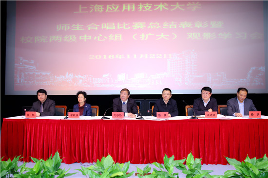 11月22日,亚博足彩举行师生合唱比赛总结表彰暨校院两级中心组(扩大)观影学习会。校党委书记刘宇陆,校长陆靖,校党委副书记、纪委书记宋敏娟,市教卫工作党委宣传处处长助理、上海教育报刊总社副社长王力力,校党委常委、党委组织统战部部长田钦,校党委常委、党委宣传部部长杨明出席会议,共同为师生合唱比赛获奖单位颁奖,并集体观看了重大革命历史题材电影《遵义会议》。会议由宋敏娟主持。