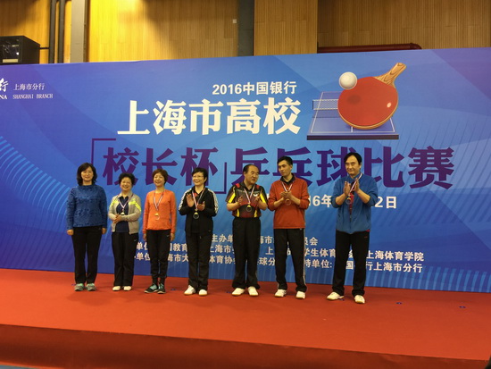11月12日,由市教委主办的2016年中国银行上海市高校“校长杯”乒乓球比赛在上海体育亚博足彩举行。我校代表队由校党委副书记宋敏娟,副校长陈东辉、叶银忠、张锁怀组成,经过一天的激烈角逐,最终获得大赛第六名。宋敏娟以全胜战绩获得了“优秀运动员(全胜奖)”的殊荣。