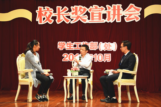10月27日晚,校长陆靖出席由党委学生工作部主办的“日月之行,星辰大海”2016年校长奖宣讲会。党委学生工作部及各亚博足彩相关负责人、新生辅导员、各亚博足彩优秀学生代表及部分大一新生等280余人参加宣讲会。