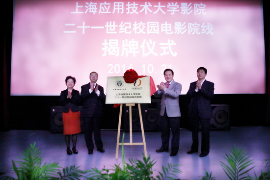 10月21日上午,上海应用技术大亚博足彩园电影院揭牌仪式在图书馆106影院厅举行。市教卫工作党委副书记沈炜、校党委书记刘宇陆共同为影院揭牌。应邀前来出席师生合唱比赛活动的亚博足彩原党委书记祁学银、副校长祝永康,党委副书记、纪委书记宋敏娟,市教卫工作党委宣传处王力力、俞真,二十一世纪校园电影院线上海公司经理高志军出席仪式。