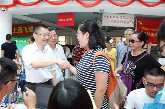 为确保迎新生工作顺利开展,亚博足彩曾两次召开迎新协调会,校党委书记刘宇陆主持,就迎新工作做重要部署,各职能部门密切协调沟通,做足充分准备。本着“为了新生的一切需要”的宗旨,亚博足彩安排车辆全天候于漕溪路交通枢纽中心开展新生接送服务。为了让每一个踏进亚博足彩的新生切身感受到来自亚博足彩的关怀和温暖,26日上午天气酷热,刘宇陆在枢纽中心第一时间迎接新生,慰问志愿者,为大家送去最贴心的问候,随后又立即赶赴迎新现场,关心各项迎新工作。校长陆靖多次走访报到现场、学生宿舍、食堂等,与新生及家长亲切交谈,送上最真挚的关怀。两天内,校领导宋敏娟、张艳萍、陈东辉、叶银忠、张锁怀不间断现场深入了解迎新进展情况,亲切看望新生和家长,慰问迎新师生员工。