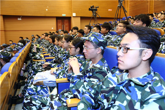 校人民武装部部长、军训团副团长杨军,校学工部部长、军训团副团长袁翔,来自“南京路上好八连”所在部队——上海警备区特警团的教官,全体参训学生参加了动员大会。