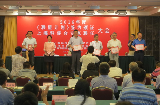 6月30日,上海市科技成果转化促进会举办2016年度“联盟计划”签约颁证、科促会专家聘任大会,会上公布了2016年度“联盟计划”资助项目名单,我校在“联盟计划”中收获甚丰,应标成功143项,获批52项,比去年(获批37项)数量增加15项,同比增加40%,联盟计划项目获批数和获批比例已经连续六年稳居全市高校首位。