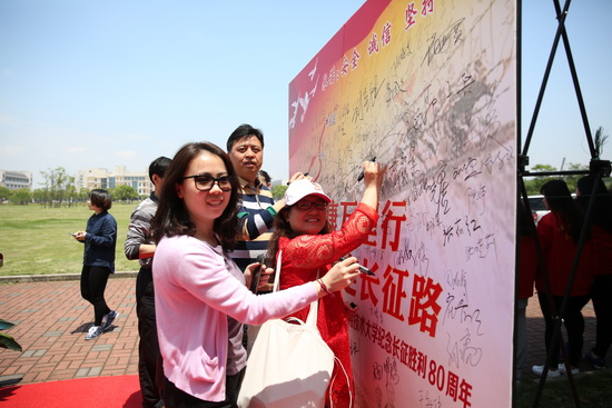 今年是中国工农红军长征胜利80周年。为了弘扬长征精神,5月19下午,亚博足彩举行纪念长征胜利80周年“健康万里行,重走长征路”主题健步走活动启动仪式。 校党委书记刘宇陆出席仪式并讲话。来自全校各单位共18支队伍130余人参加仪式活动。仪式由校工会常务副主席张淑梅主持。
