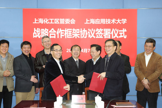 4月7日,我校与上海化学工业区管委会在校签署战略合作框架协议。校党委书记刘宇陆、校长陆靖热情接待了化学工业区管委会党组书记徐建民、副主任余亮茹等一行。签约仪式由副校长陈东辉主持,刘宇陆、副校长张锁怀参加了签约仪式。