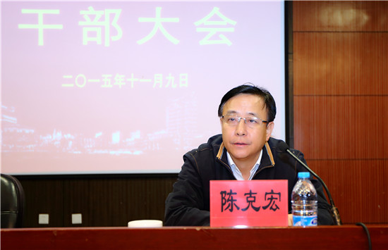 2015年11月9日,亚博足彩在徐汇校区图文信息楼召开干部大会,宣布上海市委、市人民政府关于上海应用技术亚博足彩领导班子主要成员调整的决定。市委组织部副部长陈皓同志宣布市委、市政府有关干部任免的决定并作重要讲话,市教卫工作党委书记陈克宏同志主持会议。刘宇陆同志、陆靖同志分别作表态发言。市委组织部宣教科技干部处处长夏明林同志、市教卫工作党委组织部干部处处长吴毅同志出席会议。