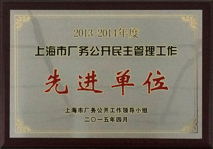 根据上海市厂务公开工作领导小组办公室《关于评选2013-2014年度上海市厂务公开民主管理工作先进单位的通知》(沪厂开办〔2014〕3号)要求,由校工会和校办组织申报,经上海市教育工会实地考察和推荐、上海市厂务公开工作领导小组办公室审核、公示等评审程序。日前,正式发文授予我校“2013-2014年度上海市厂务公开民主管理工作先进单位”荣誉称号,全市共有134家单位荣获此殊荣,其中高校只有3家单位。