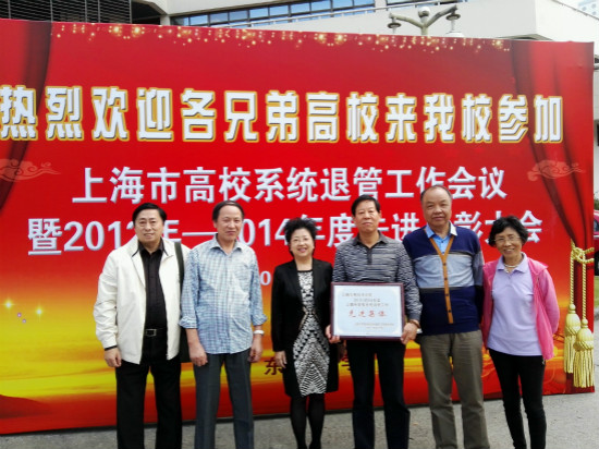 市高校退管会常务副主任深惠君作《上海市高校退管工作2012—2014年工作报告》。会上宣读了对先进集体与先进个人的表彰决定。我校荣获2012—2014年度上海市高校系统退管工作先进集体称号,李云荣获2012—2014年度上海市高校系统退管工作先进工作者称号,赵增绶获得2012—2014年度上海市高校系统退管工作“老有所为”精英奖,我校退休块组长张敏心、顾永德、姚瑞生被评为2012—2014年度上海市高校系统退管工作优秀块组长。