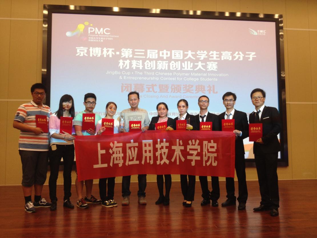 我校高分子本科组首次进入该项赛事决赛,在张英强老师的指导下,“神材飞扬”队(吴郢珊、沈晓、单昌礼、徐乐平、叶志明)携参赛作品《单组分LED 灌封胶的研制》与其他28个本科项目作品角逐。经过两天紧张激烈的决赛答辩,我校学子获得三等奖的好成绩。参加本次大赛的另一支研究生团队由贾润萍老师带队,其指导的“SIT”队以《耐热型热塑性聚氨酯弹性体的研究》作为参赛作品,经过激烈答辩评审最终也获得三等奖。张英强、贾润萍老师分别荣获“优秀指导教师”称号。
