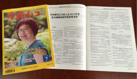 近日,中国教科文卫体工会通过官方网站和《中国教工》杂志公布了2014年度优秀调研成果评选结果。由上海教育工会报送的5篇文章分获论文类一等奖1篇、二等奖2篇、优秀奖1篇和调研报告类优秀奖1篇;我校工会课题组报送的《新形势下的高校工会福利保障工作模式探索》一文荣获本次优秀调研评选活动论文类一等奖,全国仅5篇论文获此最高荣誉。