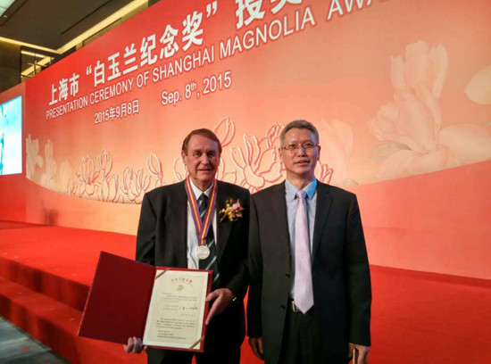 9月8日下午,2015年上海市“白玉兰纪念奖”授奖仪式在上海香格里拉大酒店举行,我校与加拿大合办的上海泰尔弗国际商务培训中心英国籍教务长柯迈克尔获此殊荣。副校长张锁怀,国际交流处、上海泰尔弗国际商务培训中心负责人及获奖者何迈克应邀出席了今年的授奖仪式。