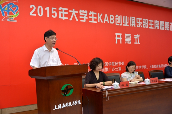 7月19日,由团中央亚博足彩部、全国学联秘书处主办,KAB创业教育全国推广办公室、上海应用技术亚博足彩、上海盐商集团有限公司承办的2015年大学生KAB创业俱乐部主席暑期训练营在我校开营。共青团上海市委副书记刘刚、KAB全国推广办公室总干事董时、上海应用技术亚博足彩副校长叶银忠、恒源祥集团总经理陈忠伟等领导出席开幕式,企业代表、业内专家、KAB创业俱乐部新老主席、创业先锋代表等160余人参加开幕式。