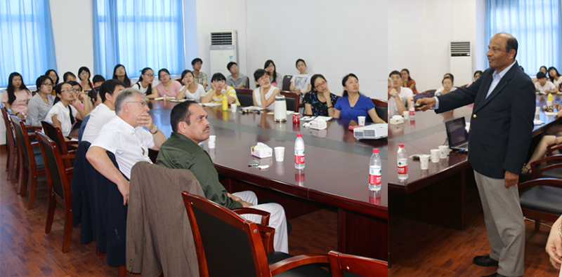 在短短的三天里,三位教授先后与我校相关领域的教授进行了面对面的学术交流、参观了香料亚博足彩的实验室和仪器设备、为相应专业的研究生做了题为“Antimicrobial peptides in food safety”的学术报告。在报告中,Narsimhan教授向研究生们介绍了具有抑菌活性的小分子肽在抑菌包装中的应用、小分子肽的抑菌机理以及利用分子动力学模拟来解释小分子肽在细胞壁上的分子作用模型。