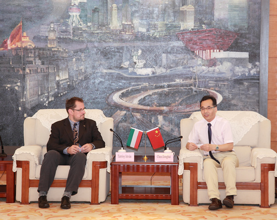 6月25日上午, 匈牙利佩奇大学外交事务委员会主任Tarrósy István 博士,工程与信息亚博足彩副院长Medvegy Gabriella博士和经济亚博足彩副院长Szucs Krisztián一行访问我校。副校长陈东辉在奉贤校区行政楼贵宾厅会见了来访的客人。国际交流处、城市建设与安全工程亚博足彩、经济管理亚博足彩相关负责人出席会谈。