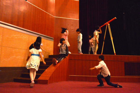 300余名小朋友在家长的温馨陪伴中观看整场演出,展开一次见证生命起源和探索大自然奥秘的奇幻旅程。《创世纪》是上海话剧艺术中心制作出品的为数不多、创作理念新颖的儿童剧之一。大多数时间剧场都是一片漆黑,只有舞台中央的一小方地闪着亮光,可爱的生物接连“诞生”——细胞、质子、水母、海马、浣熊……这部曾荣获上海国际儿童戏剧节最佳制作奖的《创世纪》,采用灵动的木偶、优美的原创音乐、富有诗意的影像、创新的魔幻技法、多媒体视频及演员出色的演技,在舞台上展现一幅幅极具视觉动感和诗意的神奇景象,使小朋友们仿佛置身于奇妙的、深不可测的宇宙中,在惊奇与欢笑中启发小朋友探知生命意义的兴趣,深受孩子们的喜爱,得到了孩子们热情的响应和热烈的掌声,演出现场气氛十分活跃。演出结束之后,剧组还安排了让小朋友们参与知识竞猜的互动环节,再次激发孩子们的好奇心和求知欲,近距离感受儿童剧欢快的魅力。