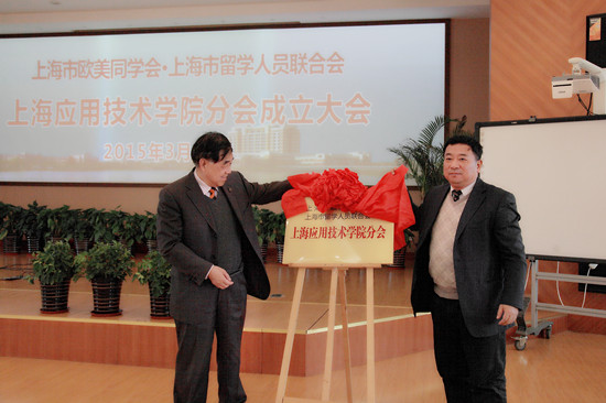 校党委常委、党委组织部统战部部长田钦出席会议并介绍上海市欧美同学会?上海市留学人员联合会上海应用技术亚博足彩分会筹备情况和第一届理事会人选构成情况。上海市欧美同学?上海市留学人员联合会常务副会长盛焕烨宣读了同意我校分会成立的批复。盛焕烨和吴松为分会成立揭牌。