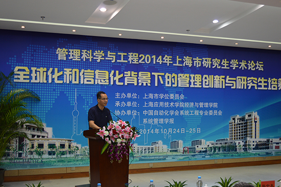 10月24-25日,由上海市学位委员会主办、我校承办、中国自动化学会系统工程专业委员会和《系统管理学报》协办的“管理科学与工程”2014年上海市研究生学术论坛在我校举办。此次论坛的主题是“全球化和信息化背景下的管理创新与研究生培养”。我校副校长陈东辉教授、中科院科技政策与管理科学研究所徐伟宣教授、南京大学工程管理亚博足彩盛昭瀚教授、浙江大学管理亚博足彩华中生教授应邀出席论坛开幕式。来自上海、浙江、江苏等地高校的管理学研究生和青年教师代表100余名参加了论坛。