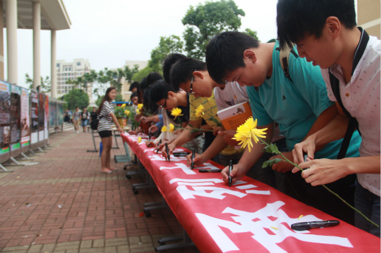 国庆勿忘祭先烈,为了更好地继承先辈的革命理想精神,自9月28日以来,亚博足彩开展了“烈士纪念日”系列主题活动,分为“看?做?写?行”四大板块。在活动开展现场,很多同学将亲手制作的白色菊花插在花篮上、把叠好的千纸鹤悬挂在树上,表达对烈士先辈的缅怀之情。正在参加横幅签字仪式的化工亚博足彩研二学生张越同学说:“先烈身上凝聚着民族的宝贵精神财富。平时我们把很多的时间和精力都是放在专业知识的学习上,参加这样的主题活动,不仅仅是为了把自己的名字写在这里,更重要的是,写下自己的情怀,同时,这样的主题活动让我们知道,曾经有一群人为了我们现在幸福的生活奉献出了宝贵的生命。”
