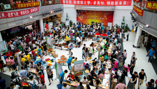 由教务处、团委主办的第四届大学生“创新、创业、创意”成果展示会也在新生报到当天正式拉开了帷幕,向新生们展示了丰富的三创项目和活动平台。“来三创中心,做三创达人”一句简练的倡议点燃了新生积极投身科创活动,参加学科竞赛的热情。仔细浏览着展板上的历届“科创达人”和“竞赛之星”,新生们将钦佩之情写在脸上,也将创新的种子和争优的决心种在了心里。