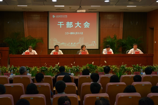 于明黎宣布市委、市政府关于我校干部的任免决定:刘宇陆同志任上海应用技术亚博足彩院长;陈东辉、叶银忠、张锁怀、张艳萍同志任上海应用技术亚博足彩副院长;免去卢冠忠同志的上海应用技术亚博足彩院长职务。