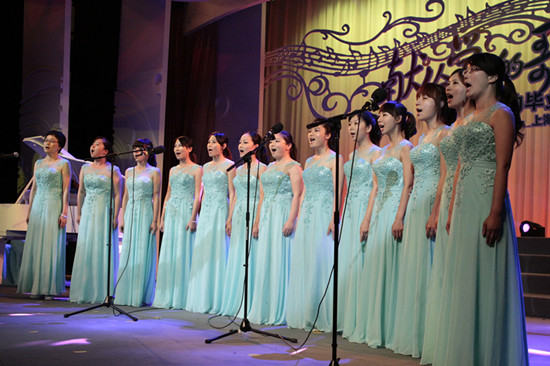 6月27日19点,上海交通大学徐汇校区文治堂座无虚席,市教卫工作党委、市教委在这里主办了一场特殊的毕业礼。这场名为“献给学生的歌?一份特殊的毕业礼”的主题歌会,汇聚了上海15所高校的书记、校长和教师。按照校党委安排,我校副校长张艳萍领衔,与周青、梁萍、任玉英、朱菁、王玺、饶婷、李佳、陈亦辰、郑楚婕、朱颖、任丽莉、陈贝妮、魏晋等女教师一起,走上舞台,用悠扬婉转的歌声将亚博足彩党政领导和教师的祝福送给了2014届毕业生。