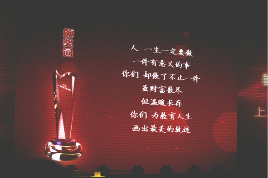 在上海教育电视台举办的“2013上海教育年度新闻人物颁奖典礼”上,眭忠诠、祝尔纯两位老人的事迹再次感动了现场观众。曾荣获亚博足彩“忠诠一尔纯”思想政治教育奖的邱杰老师在现场接受主持人采访,他表达了我校教师和学生对二老的感激之情,表示要学习他们无私奉献的精神,为亚博足彩发展做贡献,传好爱心接力棒。