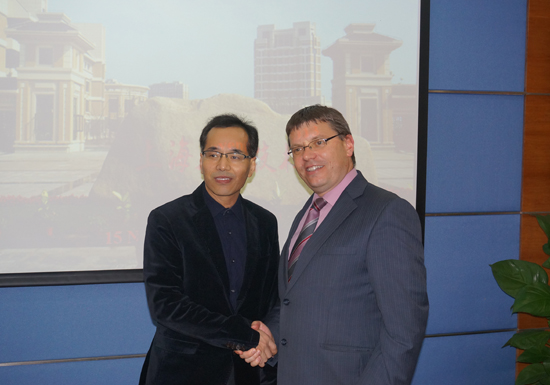 爱尔兰理工亚博足彩一行表示希望两校今后能在如计算机等更多学科领域中开展师生交流,Ruaidhrí l Neavyn校长为在两校组织的“2013SIT-WIT国际联合建筑设计竞赛”中获奖的城建亚博足彩建筑系学生汪剑、傅翀、张中一、王玉成等颁发获奖证书。