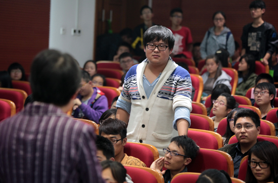 讲座开篇便紧紧吸引住同学们的注意力,张艳萍幽默地分享了自己大学时代担任学生干部的经历,紧接着结合几个名人以及身边两个老党员于漪和潘瑞鹏的奋斗故事告诉在座班团干部:对于班级干部来说要拥有“坚定的目标,合理的时间分配以及合格的领导素质要求”。她鼓励同学们要注重提升班集体的凝聚力,以班级为工作重心,营造“积极、向上、团结”的班集体。演讲感染了在场每一位学员,在互动环节中,学员们积极踊跃地针对如何更好地提升班集体凝聚力、协调好班级工作等问题进行提问,张艳萍一一耐心地予以解答,会场时不时传来阵阵掌声。