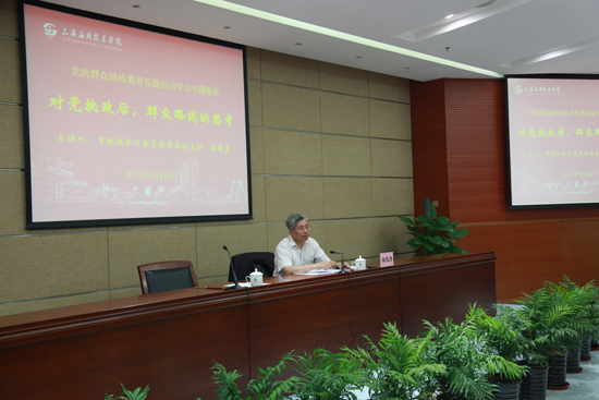 9月18日下午,上海市政协学习委员会常务副主任柴俊勇教授应邀来校,作题为《对党执政后群众路线的思考》的专题学习辅导报告。校党委书记、校党的群众路线教育实践活动领导小组组长吴松,校党委副书记、校党的群众路线教育实践活动领导小组副组长宋敏娟,副校长陈东辉、叶银忠、张锁怀、张艳萍出席专题学习报告会。宋敏娟主持。