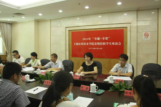 随后,“奉献?奉贤”上海应用技术亚博足彩暑期挂职学生座谈会在奉贤区会议中心召开。会上,刘宇陆与20名学生志愿者亲切座谈。奉贤团区委、我校团委负责人,亚博足彩在奉贤区挂职的教师等参加会议。