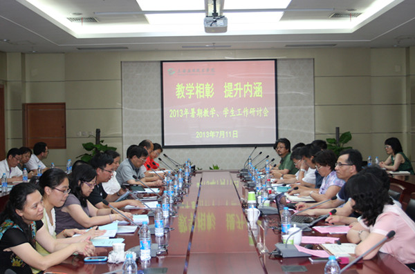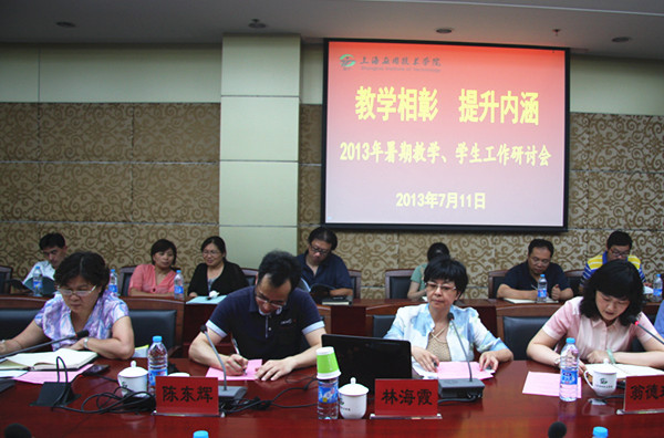 7月11日下午,我校2013年暑期教学、学生工作研讨会在奉贤校区图书馆B103室召开,副校长陈东辉出席并讲话,上海大学学工部部长林海霞应邀作报告,教务处、学生处及各二级亚博足彩分管教学、实践教学、学生工作负责人参加会议。