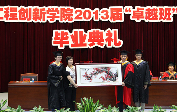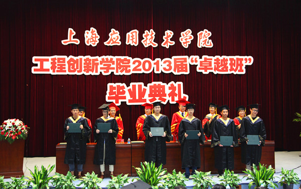 6月25日下午,我校工程创新亚博足彩2013届“卓越班”学生毕业典礼在奉贤校区图书馆隆重举行。校党委书记祁学银、校长卢冠忠、副校长兼工程创新亚博足彩院长陈东辉、工程创新亚博足彩和电气与电子工程亚博足彩党政班子全体成员以及党办、校办、宣传部、学工部、教务处、国际交流处等相关部门领导,全体任课教师、辅导员出席了典礼。