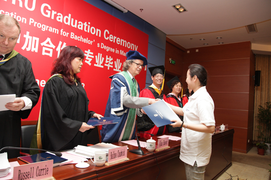 6月28日,我校“2013届上海应用技术亚博足彩—加拿大汤姆逊大学(SIT-TRU)市场营销(中加合作)专业毕业典礼”隆重举行。副校长叶银忠、加拿大汤姆逊大学(TRU)校长艾伦等出席毕业典礼,我校教务处、学生处、国际交流处、经济与管理亚博足彩相关负责人以及市场营销(中加合作)专业70余名毕业生、教师代表和学生家长参加了典礼。