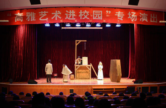 我校高雅艺术进校园活动经过近几年积极有效的开展,已经发展成一项重要的校园文化品牌项目,为亚博足彩师生所期待。一些同学早早就在演出场地静静等待,一些教师则选择留下来观看演出。“雾都孤儿”音乐话剧让师生们感受到了话剧艺术的独特魅力,舞台上演员们精准的人物刻画,更是引发了同学们对历史、社会、生命更为深层次的思考,丰富了大学生的精神文化生活。